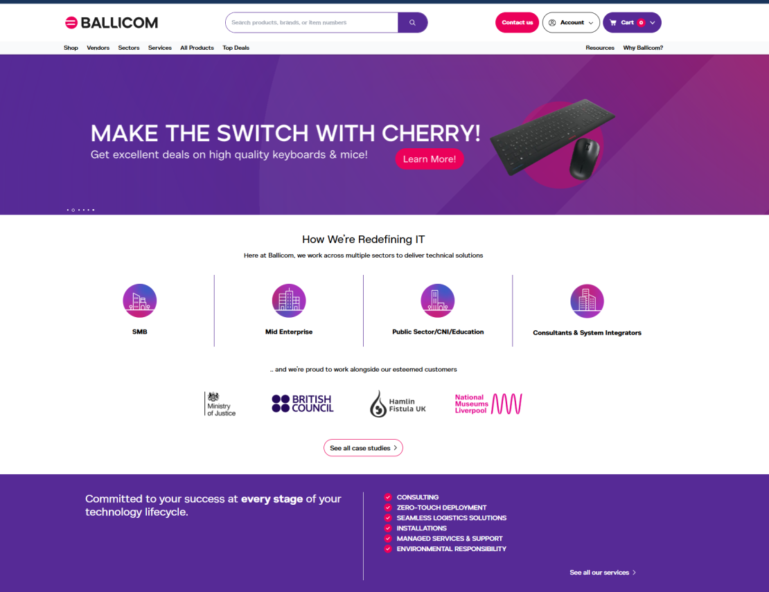 Founded in 1999 and headquartered in Coventry, Ballicom Limited is a leading technology retailer and solutions provider to the public sector, SMEs, and large enterprises across the UK. The company’s thriving e‑commerce platform lists more than 100,000 IT products from servers and storage to software licensing and peripherals while its in‑house technical team delivers bespoke infrastructure projects, device roll‑outs, and lifecycle services. Continuous online availability and data integrity are mission‑critical: customers depend on Ballicom’s website for real‑time stock, sharp pricing, and rapid fulfilment, and government frameworks expect uncompromising security. To keep pace with growth and guarantee a seamless user experience, Ballicom sought a robust private‑cloud foundation backed by specialists who could operate and secure it around the clock.